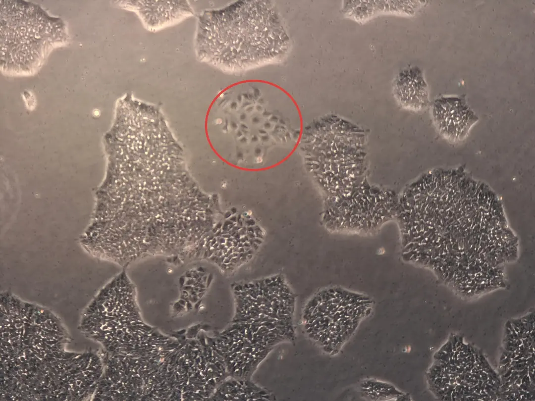 Before passaging, we often observe abnormalities at the edges of some colonies: